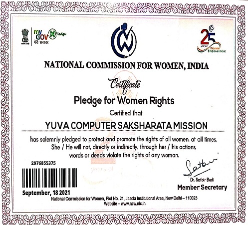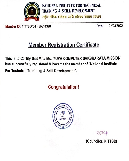 Yava Computer Saksharta Mission has National Youth Center (YCSM) is the No. 1 fast growing Computer and Vocational Brand in India, is registered under PTA –1882. Pledge certified of National Human